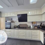 В кухне установлен современный кухонный гарнитур из массива. Имеется уютная обеденная зона. Вся техника фирмы Bosch.