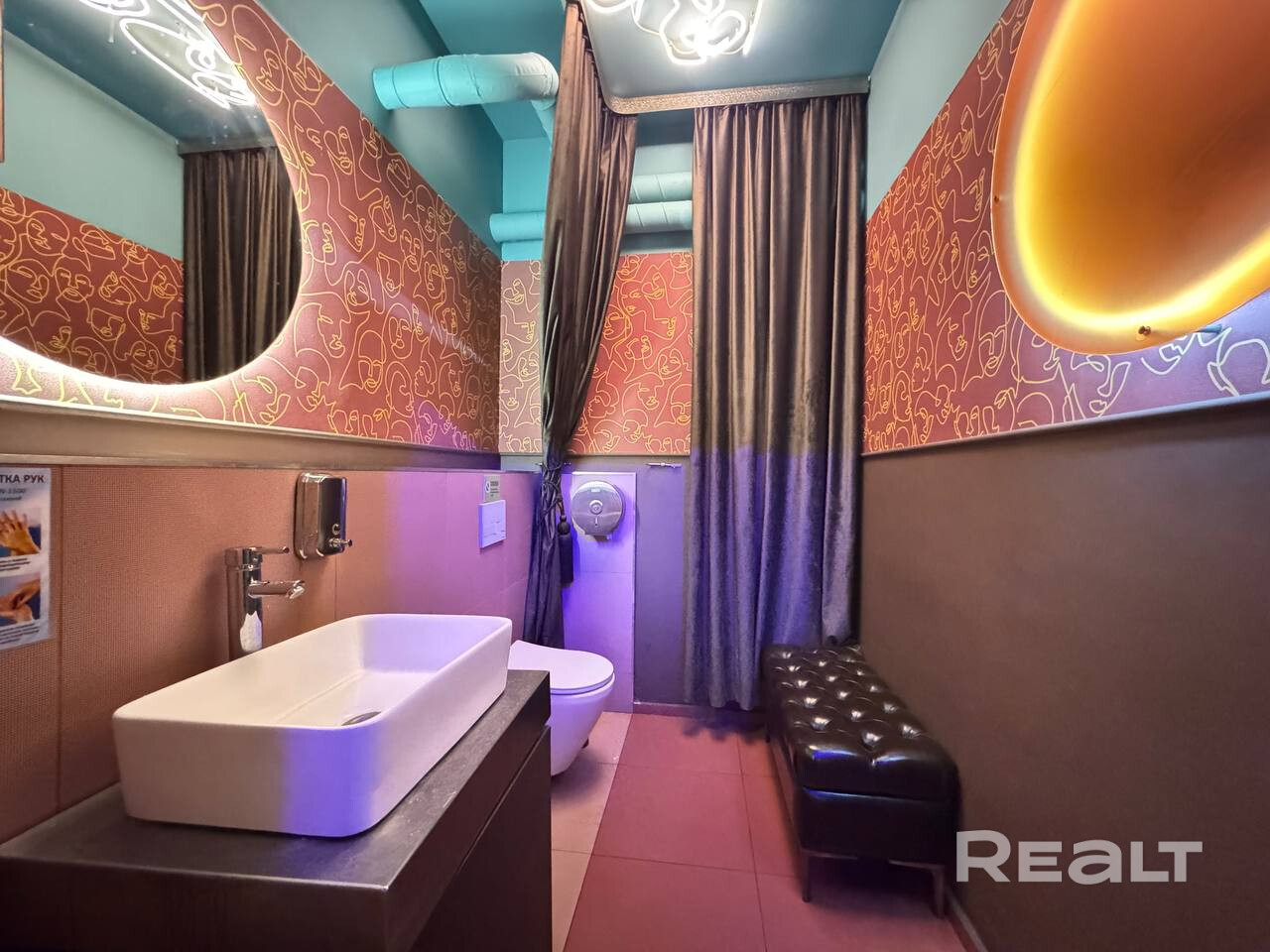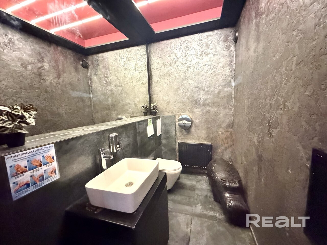 Площадь 92 м квадратных включает в себя отдельный вход в бар, гардеробная, стойка администратора, барная стойка, два санузла, помещение для приготовления пищи, складское помещение и топочная. Выполнен качественный новый дизайнерский ремонт в современном стиле, в баре есть всё необходимое для работы начиная с оборудования и заканчивая стильной мебелью. Имеются все необходимые коммуникации: центральная канализация и водоснабжение, электричество, своя котельная, также функционирует система кондиционирования.