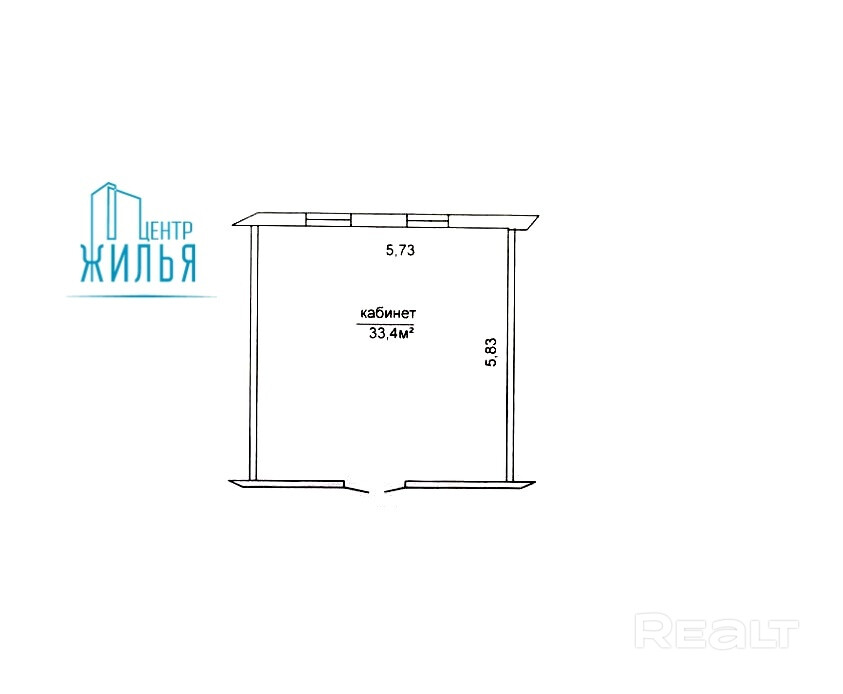 Площадь помещения составляет 33,4 м2.