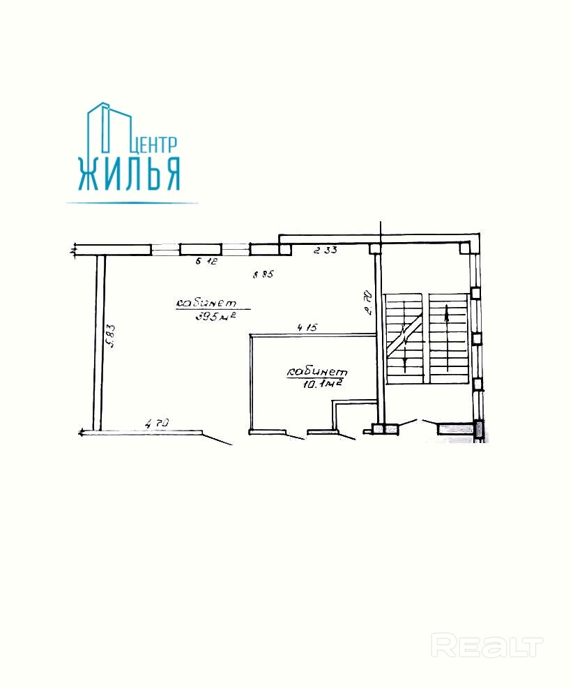 Общая площадь составляет 49,6 м2 (39,5 и 10,1 м2).
