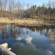 Участок окружен сосновым лесом, на участке сосны. Через деревню протекает речка Миранка.