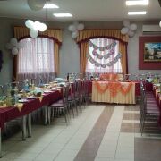 На территории комплекса работает кафе "Белые паруса" на 60 посадочных мест, имеется бар и два банкетных зала на 30 и 150 человек.