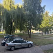 Рядом с домом удобная парковка , есть хорошая детская площадка .