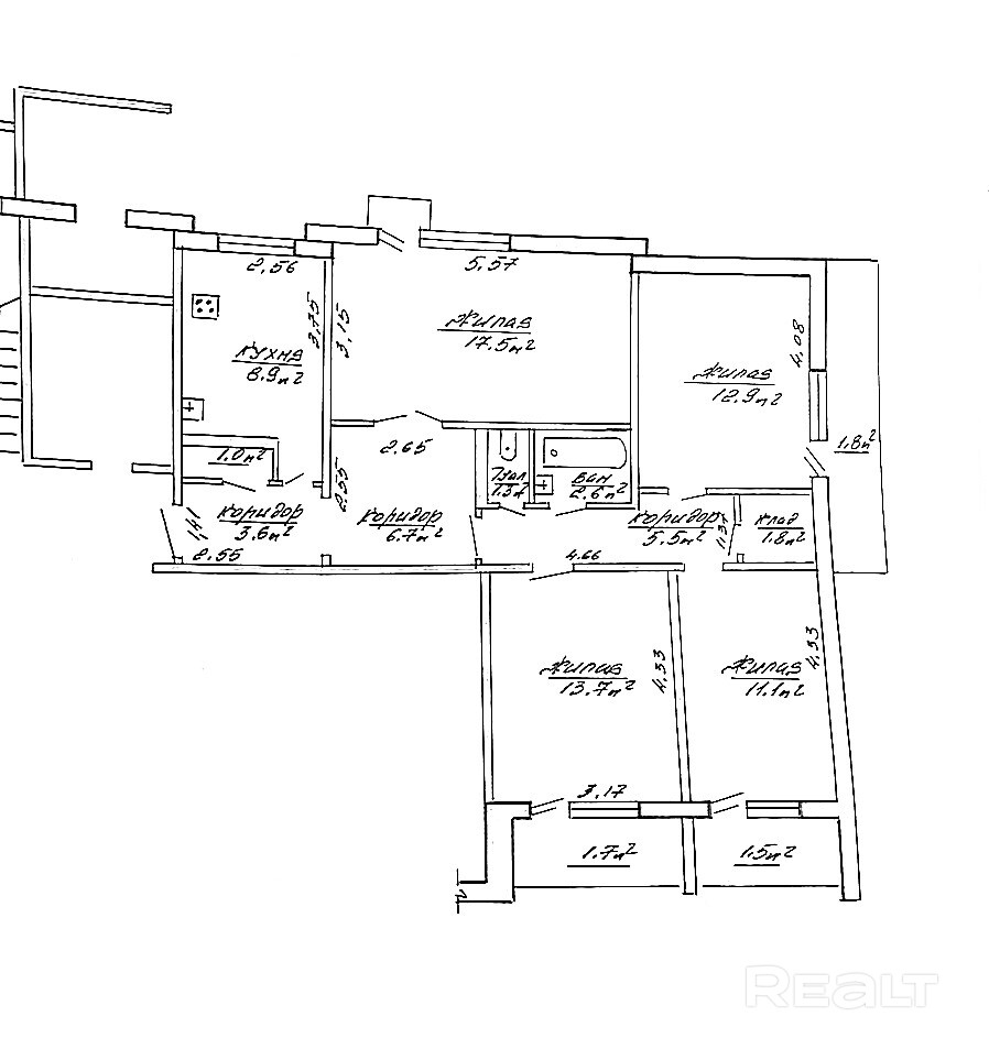 Параметры квартиры: общая площадь- 86,6 кв м жилая площадь- 55,2 кв м