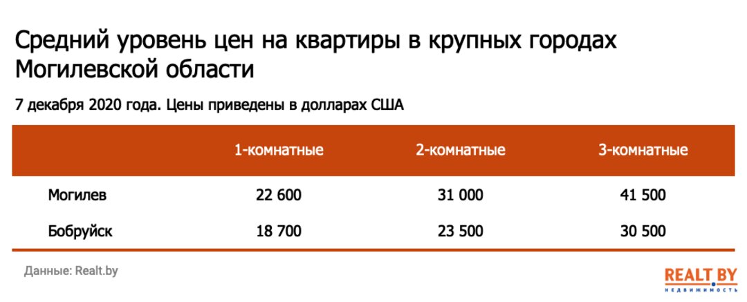Мониторинг цен предложения квартир в Могилеве и городах Могилевской области за 30 ноября — 7 декабря 2020 года