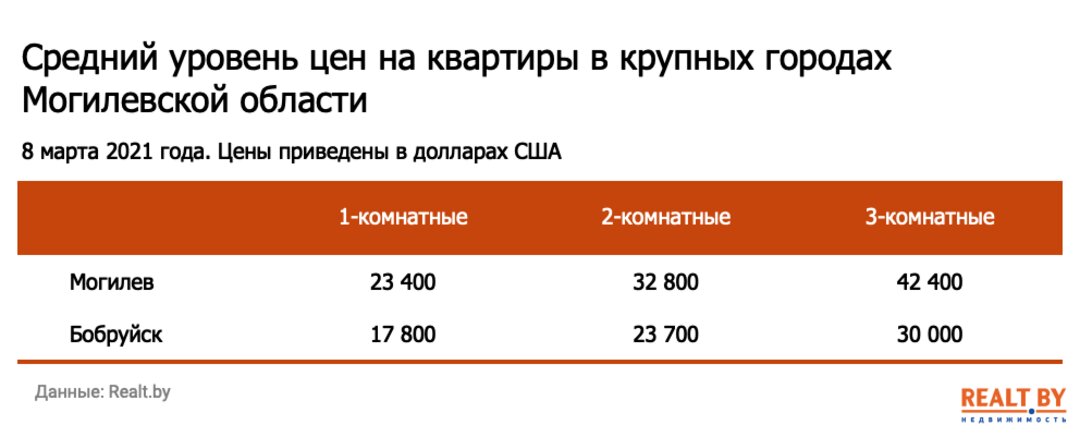Мониторинг цен предложения квартир в Могилеве и городах Могилевской области за 1−8 марта 2021 года