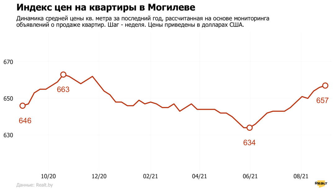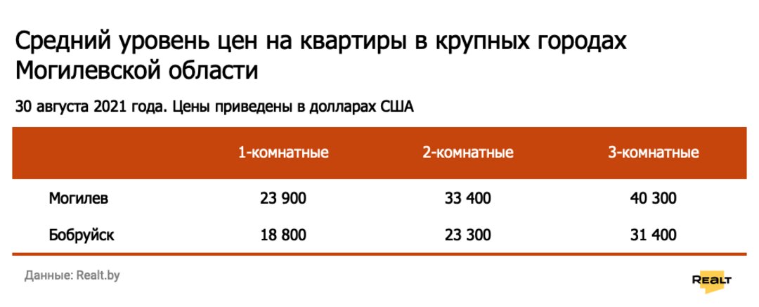 Мониторинг цен предложения квартир в Могилеве и городах Могилевской области за 23−30 августа 2021 года