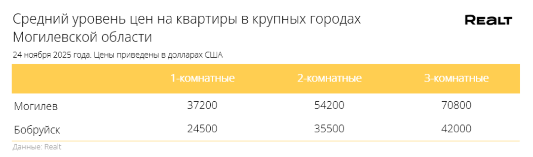 Для сравнения приведем средние цены на квартиры в других городах Беларуси: