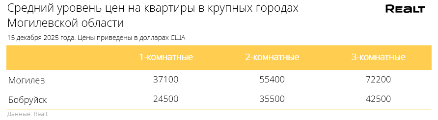 Выросла стоимость квадрата для двушек. Что произошло со стоимостью квартир в Могилеве и области за 8−15 декабря 2025 года