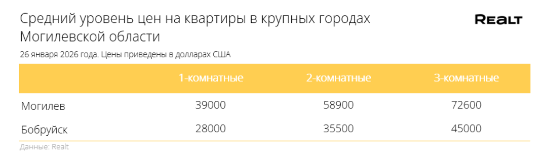 Что с ценами на трешки? Что произошло со стоимостью квартир в Могилеве и области за 19−26 января 2026 года