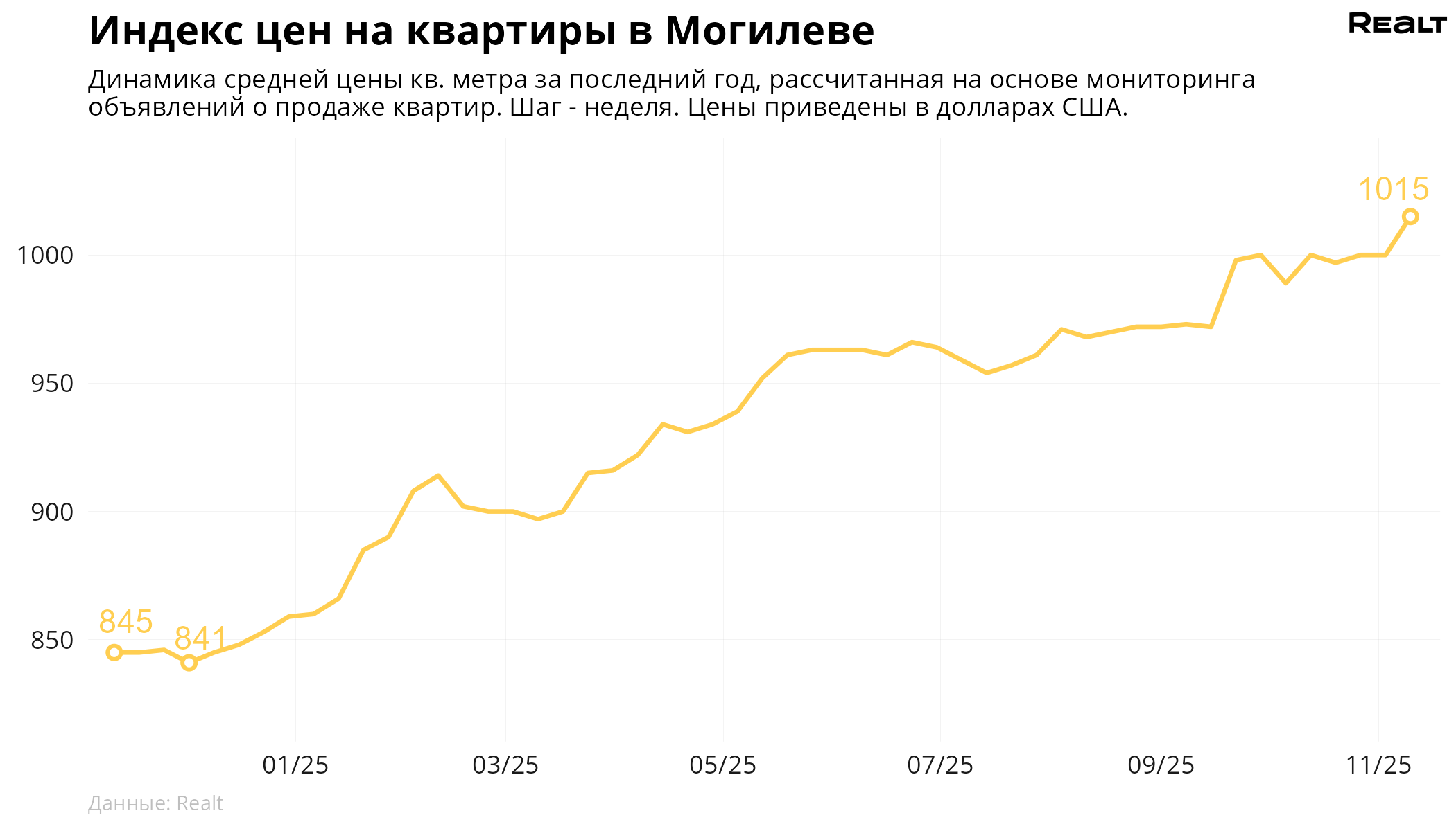 303За неделю, с 3 по 10 ноября 2025 года, средняя цена в объявлениях о продаже квартир в Могилеве выросла на 1.5% и составила 1015 $/м2. При этом количество квартир в продаже увеличилось на 8%. Что еще произошло на рынке жилья крупнейших городов Могилевской области за семь дней — в материале.