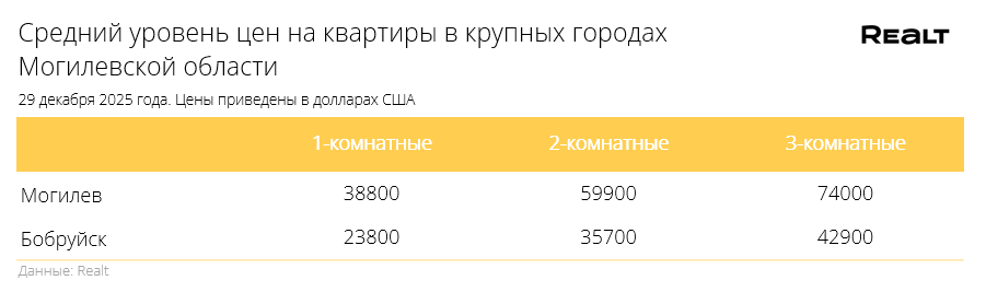 За год стоимость квадрата выросла на 20%. Что произошло со стоимостью квартир в Могилеве и области за 22−29 декабря 2025 года