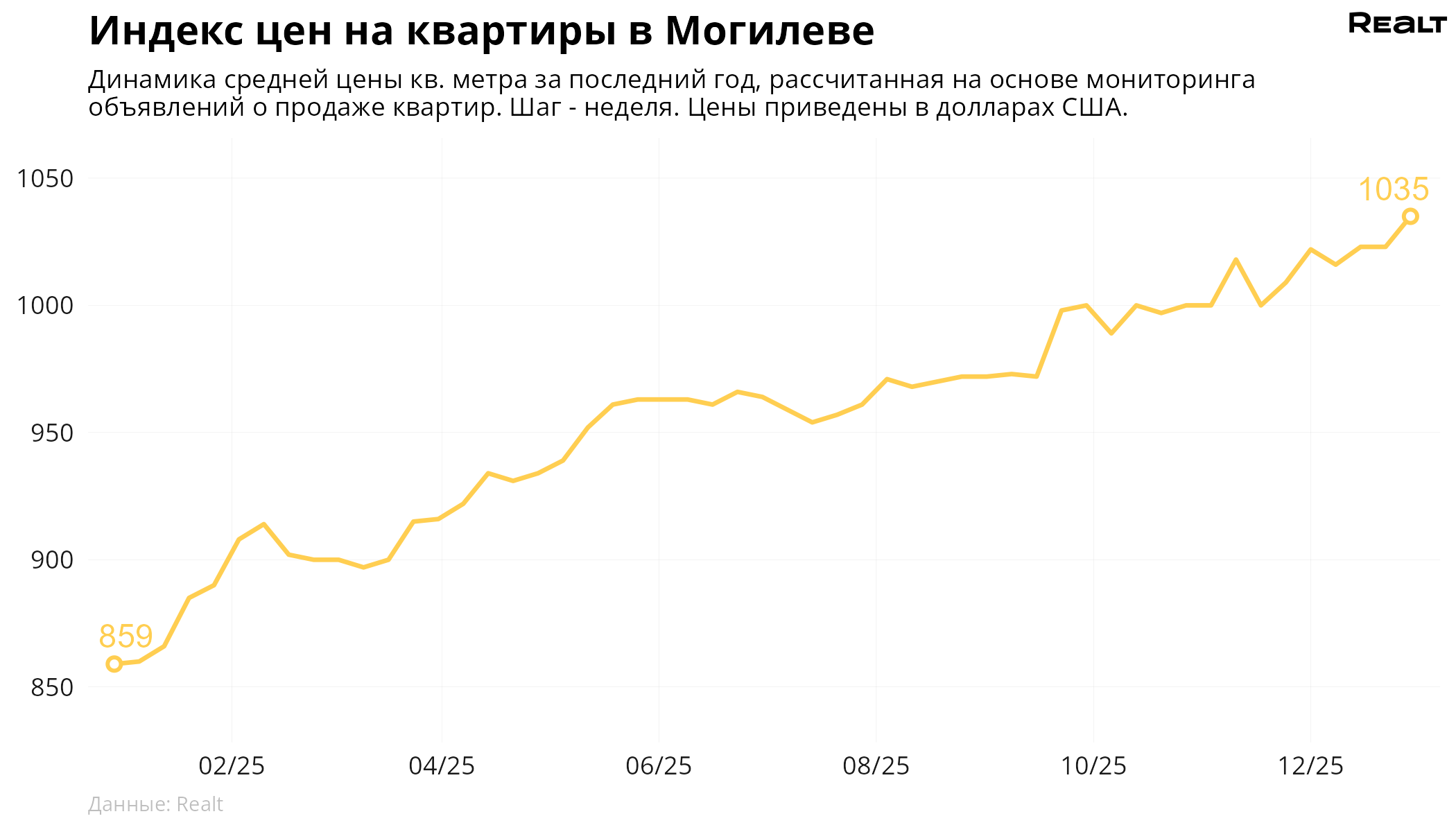 544За неделю, с 22 по 29 декабря 2025 года, средняя цена в объявлениях о продаже квартир в Могилеве выросла на 1.2% и составила 1035 $/м2. При этом количество квартир в продаже уменьшилось на 0.7%. Что еще произошло на рынке жилья крупнейших городов Могилевской области за семь дней — в материале.