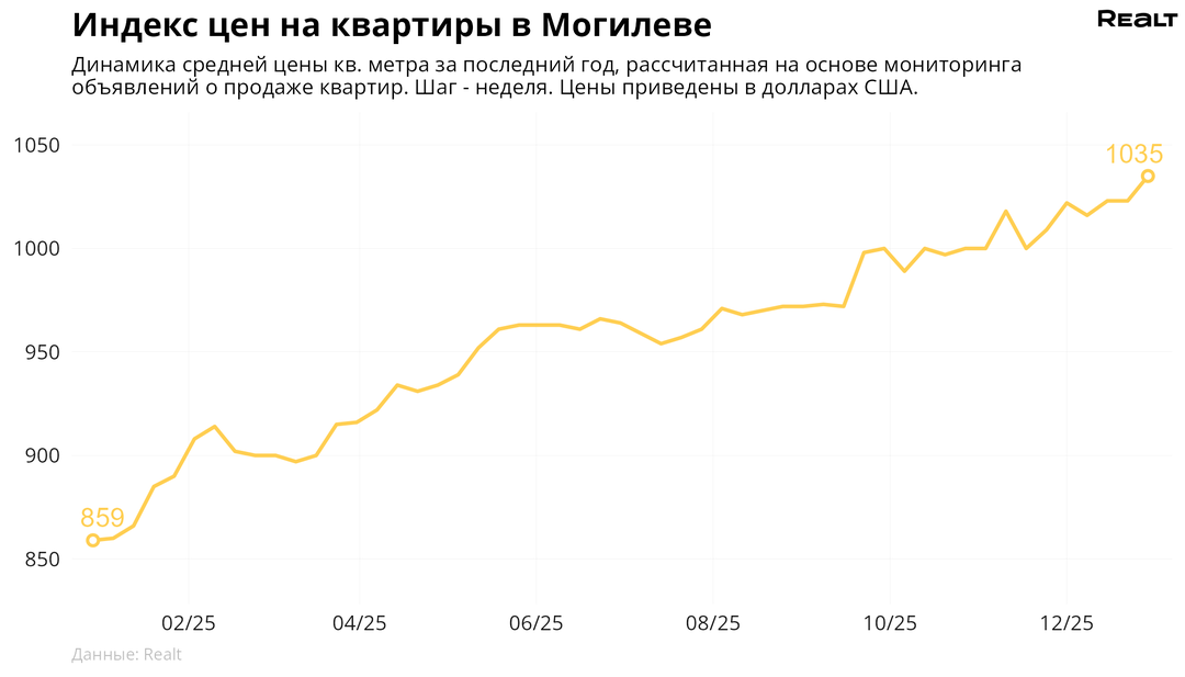 За год стоимость квадрата выросла на 20%. Что произошло со стоимостью квартир в Могилеве и области за 22−29 декабря 2025 года