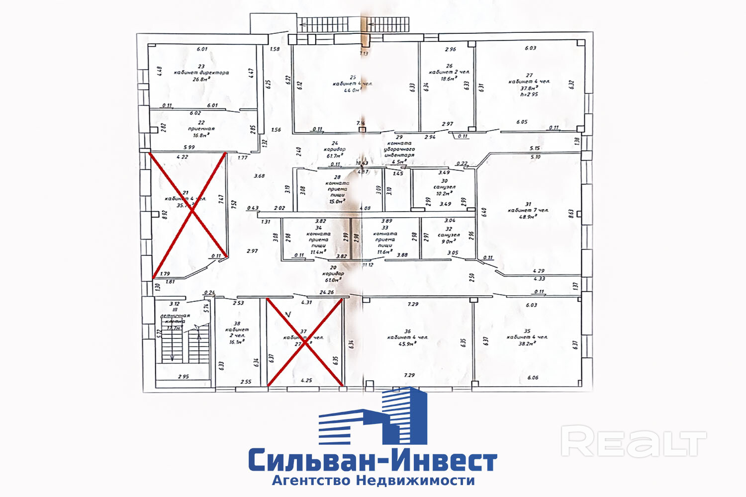 В аренда предлагаются офисы на 2 этаже. Свободные и актуальные площади: кабинет директора 26,8 кв.м. + приёмная 16,8 кв.м. кабинет – 44 м², кабинет – 18,6 м², кабинет - 37,8 м², кабинет – 48,9 м², кабинет – 45,9 м², кабинет - 38,2 м².