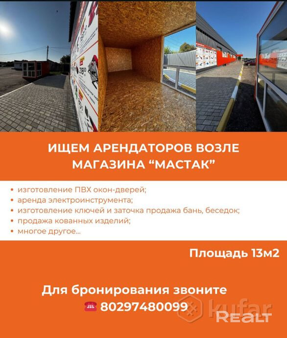 Сдается в аренду торговый павильон площадью 13 м2 рядом с магазином Мастак. Магазин Мастак самый большой строительный магазин в регионе. Павильон отлично подойдет для организации магазина или офиса по продажам например: окон ПВХ, изготовление ключей и заточка инструмента, сдача в аренду электроинструмента, ритуальный магазин, общепит и другое. Ремонт мы сделаем под ключ под Ваш бизнес. Звоните договоримся Алексей