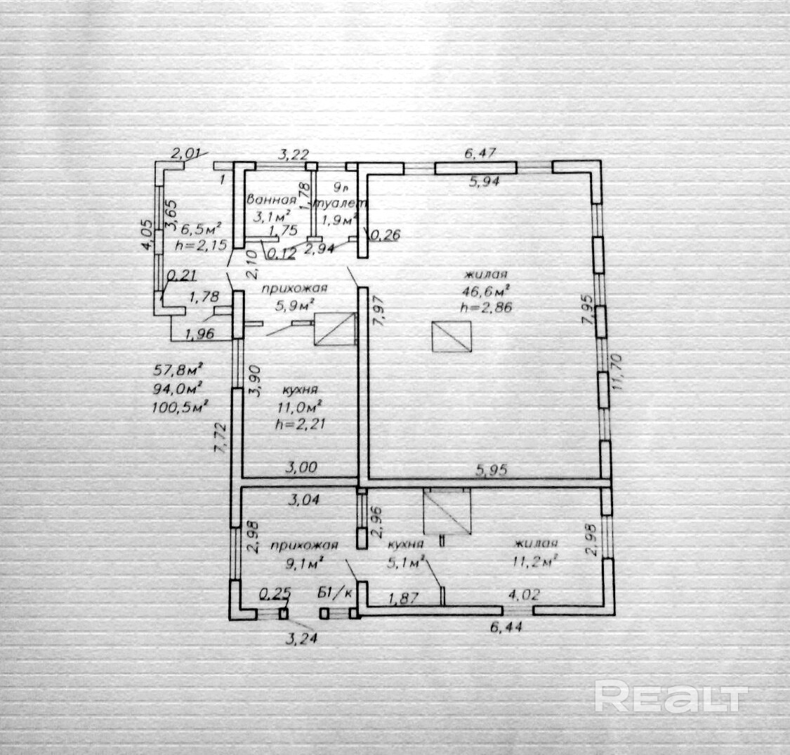 - общая 94,0 кв. метра;