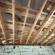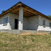 Конструкция дома выполнена из блоков толщиной 400 мм, с деревянными балками перекрытия и скатной чердачной кровлей. Стропильная система надежна и обеспечивает долговечность крыши.