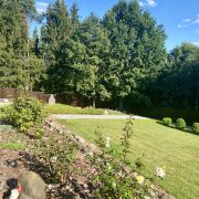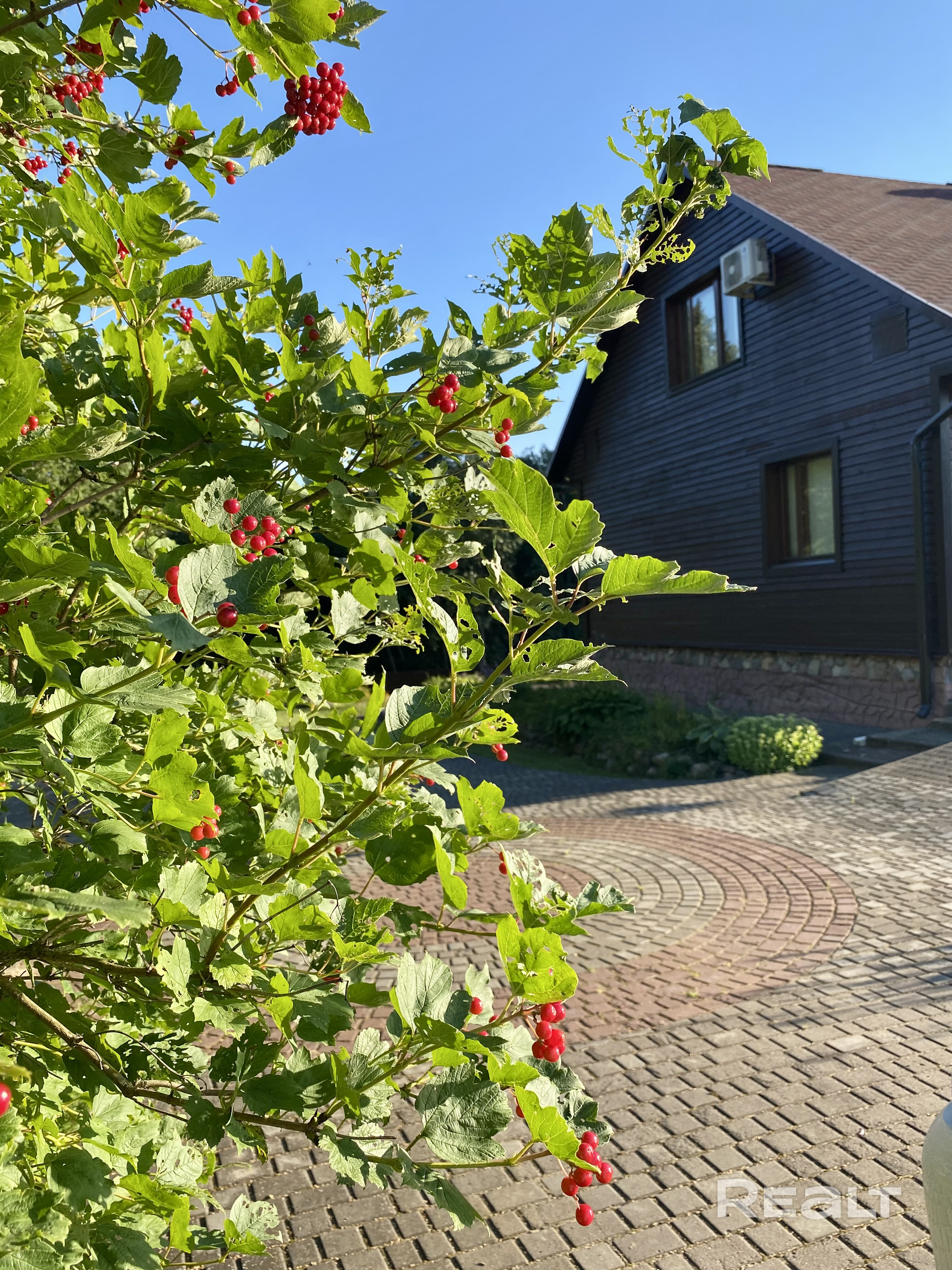 На участке: баня на дровах с комнатой отдыха, площадка для барбекю, сад, пруд, огород, площадка для бассейна, зеленые зоны для отдыха.