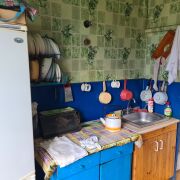 Дом продаю в Глуске на высоком фундаменте. 3 комнаты: большая, средняя и маленьная. Большие: прихожая, столовая и кладовка. Кухня. Под печкой большой подпол. Высокие потолки 2.90м. Два входа. Вода холодная в доме. Канализация септик. Газ балон. Подключена стиральная машина. Отопление печь. На участке 13 соток погреб, сарай.