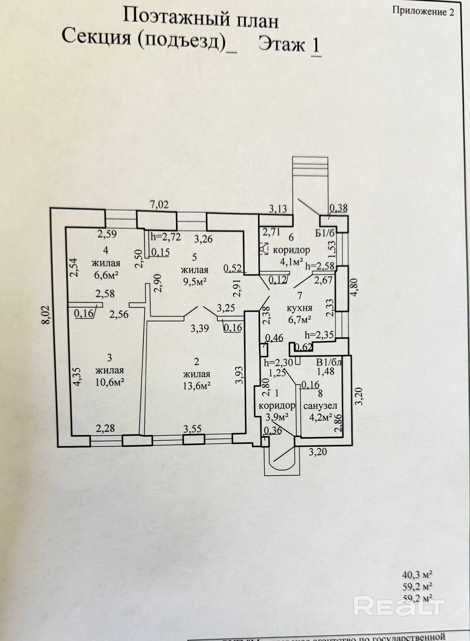 Общая площадь дома 59,2 кв.м. - Жилая площадь 40,3 кв. м. - Кухня -6,7кв.м.