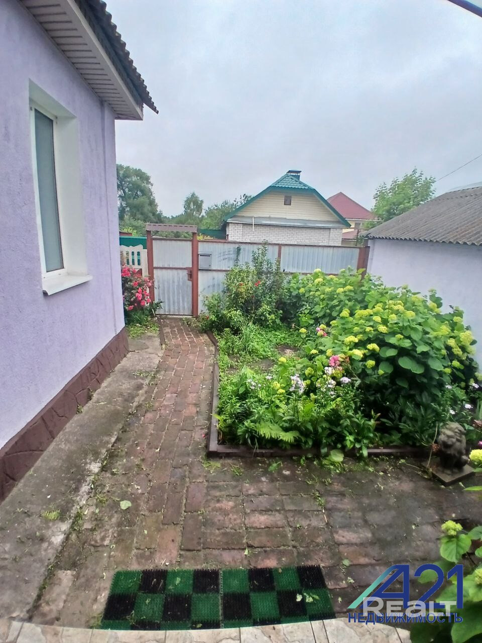 На благоустроенном участке в 5 соток расположен гараж с ямой, баня, сарай, растут черешня, вишня, малина, крыжовник, голубика, смородина, жимолость, виноград. Розы, пионы и гортензии.