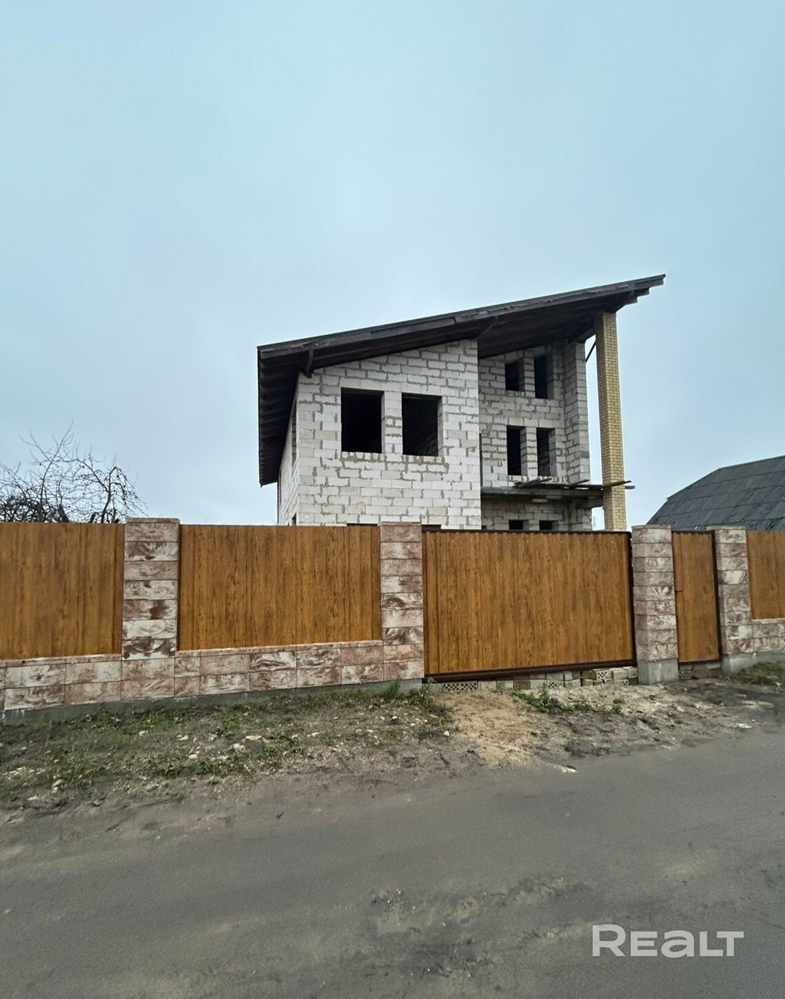 Коробка - газосиликатные блоки (плотность D400 - 1 категория). Оконные проемы под французские окна на всех этажах, 2 и 3 этаж - террасы. Гараж встроен в основной дом. Вся территория огорожена новым забором с откатными воротами.