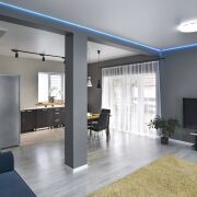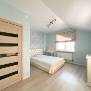 В доме 4 жилые комнаты (11,7 м.кв. - на первом этаже и 24,4 м.кв., 15,1 м.кв., 14,0 м.кв. - на втором), кухня-гостиная (40,8 м.кв.), кухня (20,0 м.кв.), два совмещенных санузела на каждом этаже, просторные гардеробные. Имеется терраса (31,2 м.кв.) для уютных вечерних посиделок, выход на которую осуществляется с кухни-гостиной.