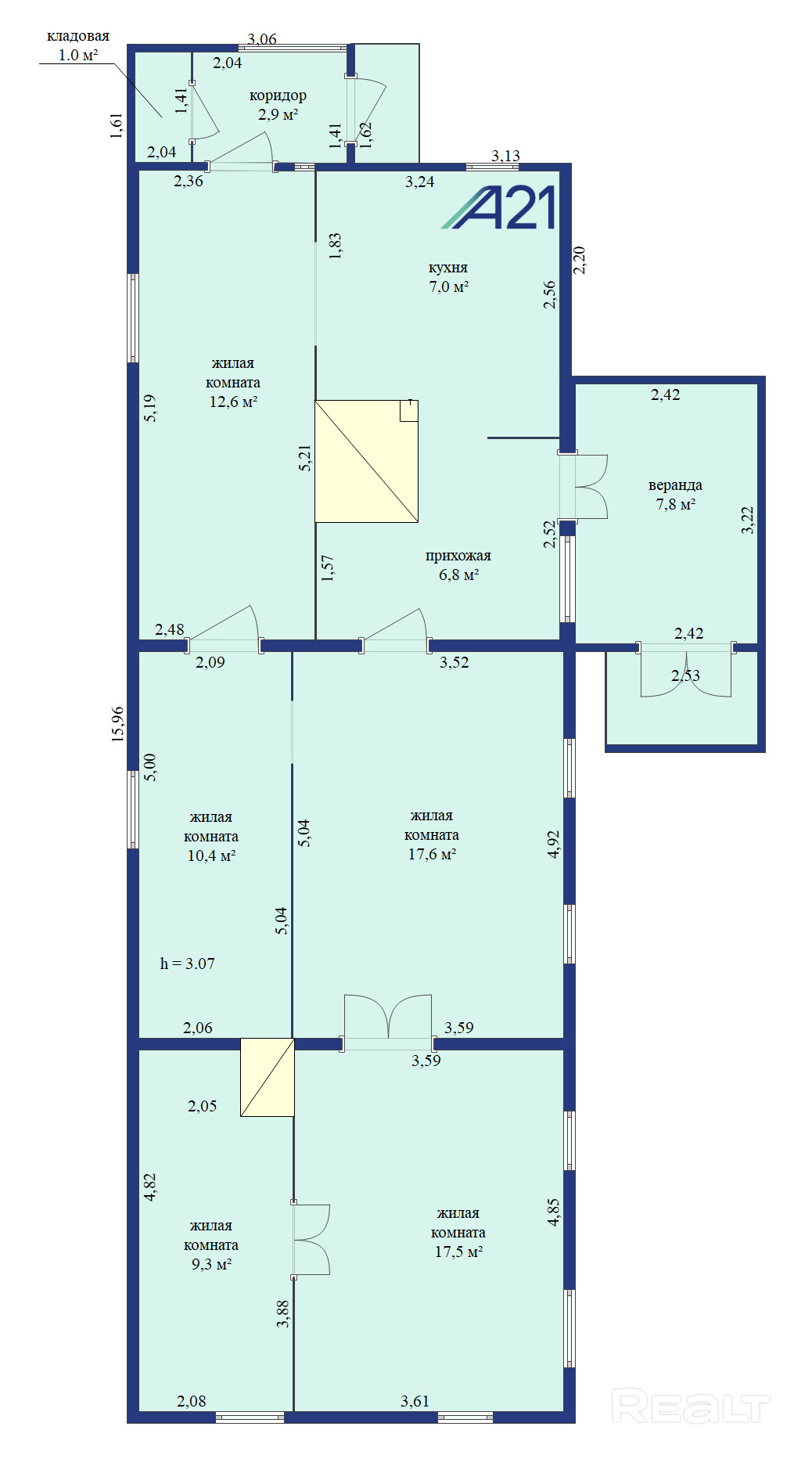· Общая площадь: 92,9 м2