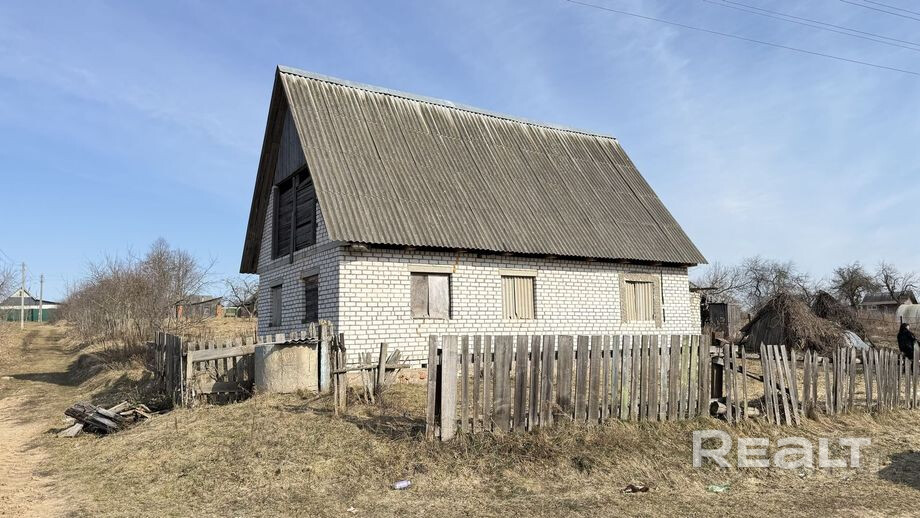 Продается незавершенное законсервированное капитальное строение аг. Дашковка, ул. Большая Заречная. Общая площадь дома 78м2. Участок в частной собственности 25 соток, участок ровный, угловой. Материал стен блок обложен кирпичом, крыша шифер двускатная. Колонка с водой на участке, свет и газ идет по улице. Рядом с домом р. Доска, лес. Остановка в 5 минутах, автобус ходит регулярно, магазин, аптека, школа .
