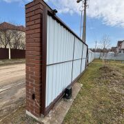 По всему периметру участка установлен забор из металлопрофиля,на территории есть большой гараж.