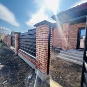Наш построен по самому современному модному проекту. Мы не перестаивали старое строение, как предлагается в большинстве домов по рынку, а строили дом изначально для самой счастливой семьи. Дом кирпичный, на железобетонном ленточном фундаменте. Толщина стены -520мм. Высота потолков -3300мм, Без "лишних"квадратов. Крыша-металлочерепица-0.5мм. Подшивка свесов- металлический софит. Водосточная и снегозадержательная система по периметру.Крытое железобетонное крыльцо Общая площадь -137м.кв. Жилая-64 м.кв. Гараж -30м.кв. Крытая веранда -40м.кв. Вода в доме. Канализация разведена по дому.Электричество и газ за забором.Большой участок. Дорогостоящий кирпичный забор с откатными воротами. Асфальтированный подъезд к дому. Остановка общественного транспорта и магазин в 150метрах.