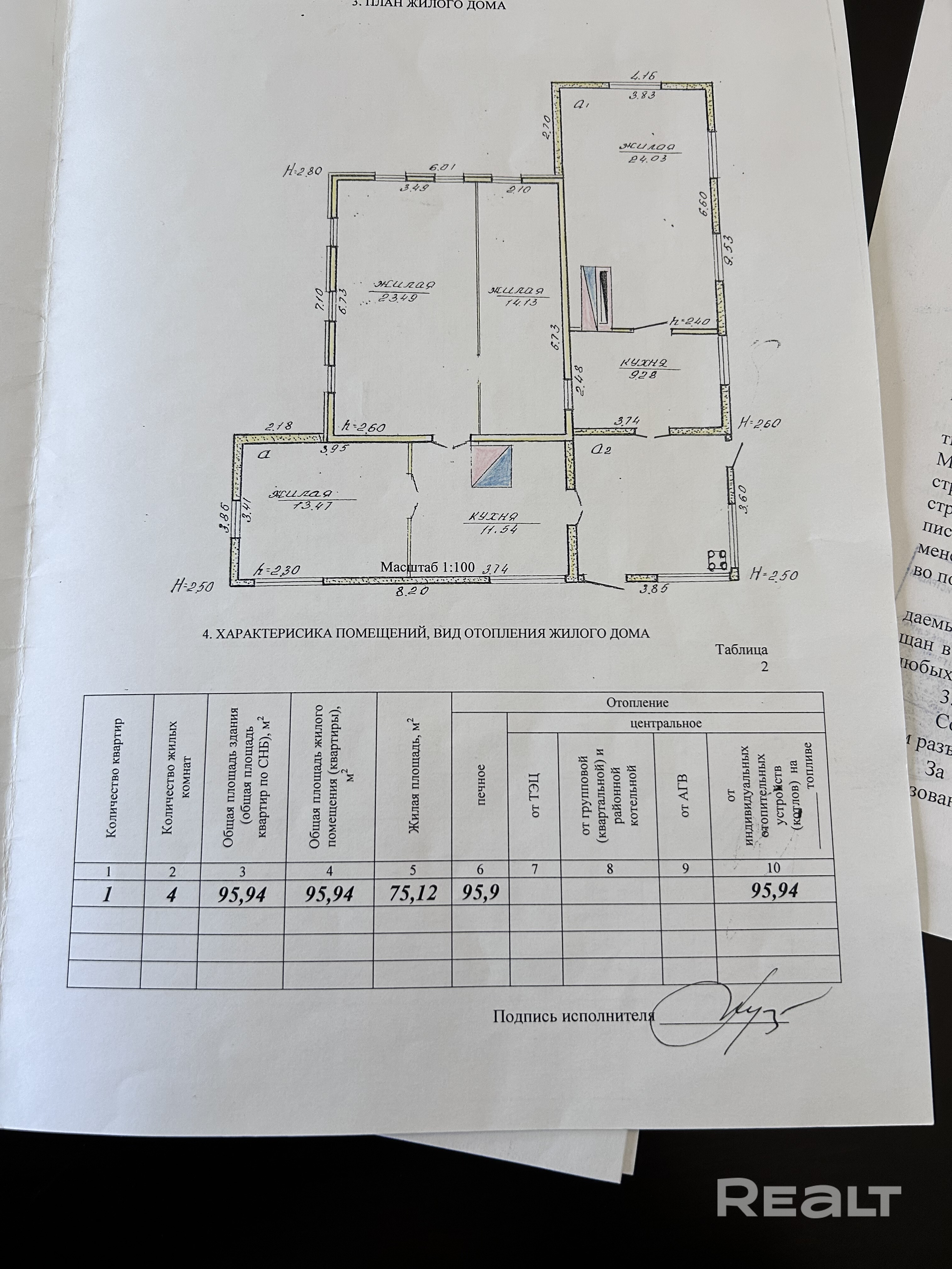 Общая площадь дома 96 метров , жилая 75, раздельных комнат 2 , всего 4, просторный сан узел .