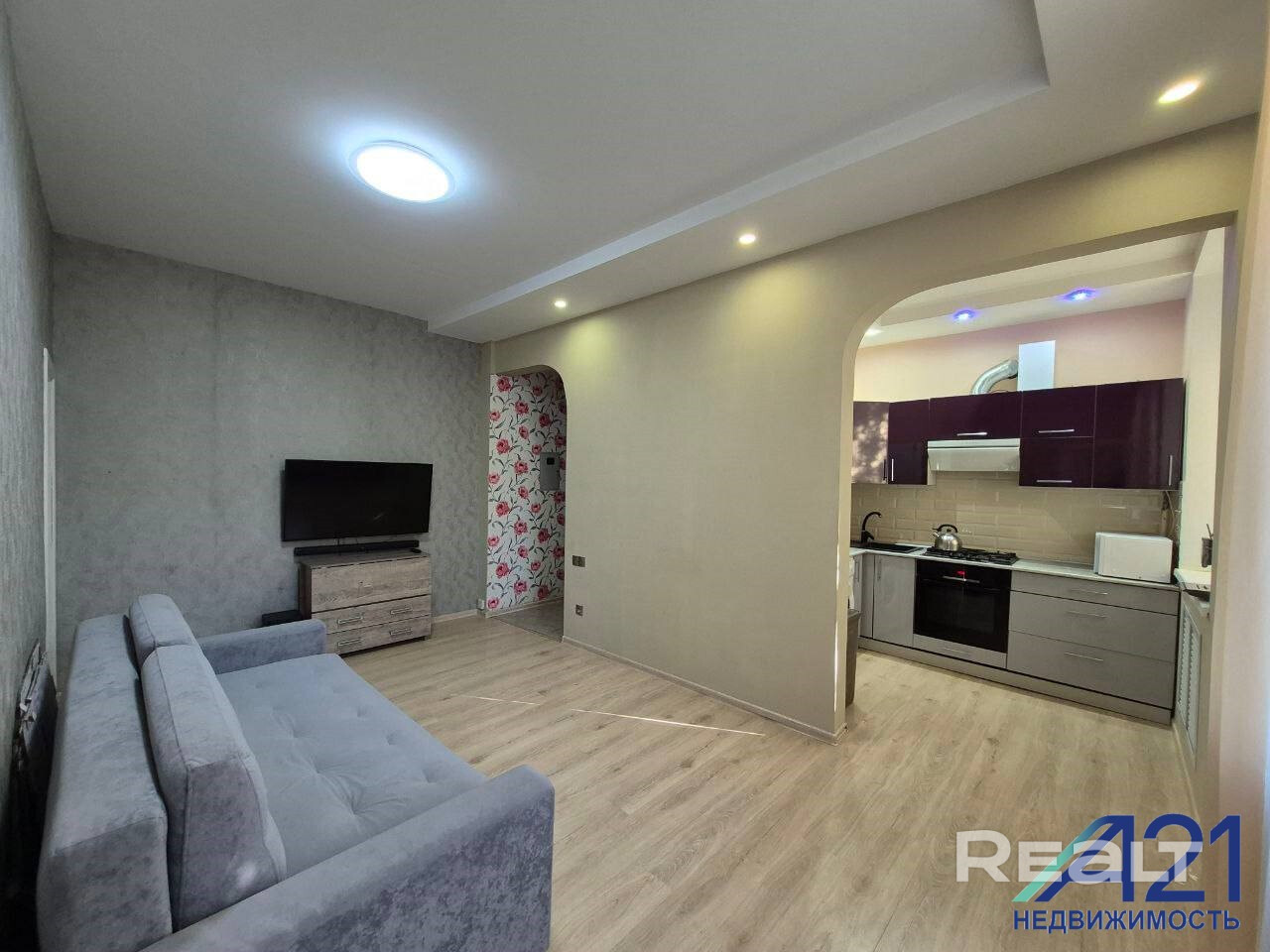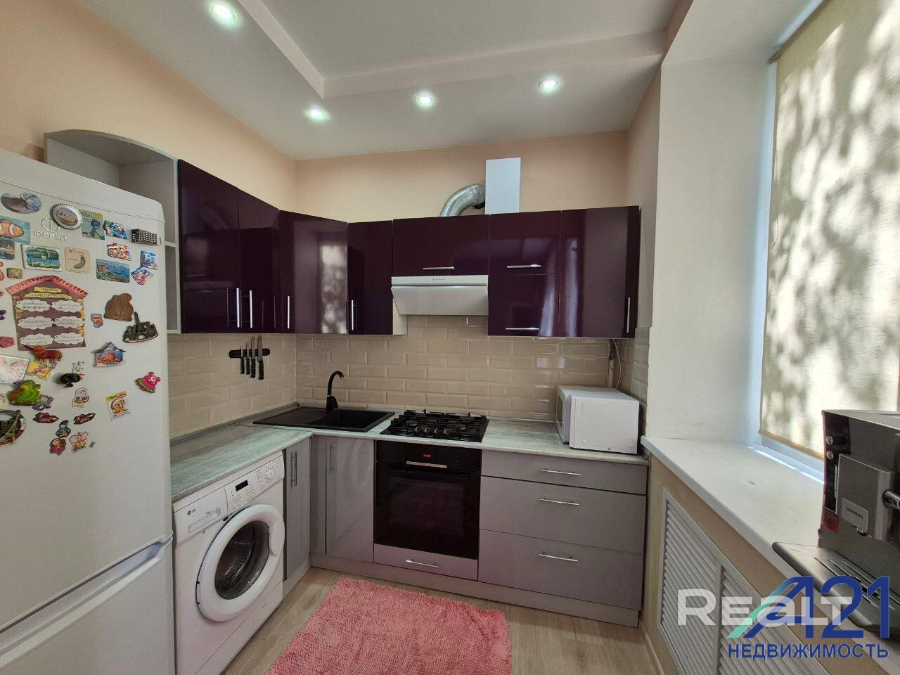 . Общая площадь по СНБ 37.6 кв. м. Жилая площадь - 23.1кв.м. Установленная новая сантехника и проводка. Сделан хороший ремонт. Окна ПВХ во всех комнатах. В санузле плитка. Имеется темная комната, переделанная в гардеробную. Есть балкон. Центральное водоснабжение. Установлены счетчики. Продажа с мебелью и техникой. Чистый подъезд, спокойные соседи. Центр города вся инфраструктура в шаговой доступности: пл. Ленина, школы, детский сад, торговые центры, магазины, банки, аптеки, оптика, кафе, поликлиники, остановки. Хорошее транспортное сообщение. Агентство "А21 недвижимость центр услуг" является действующим членом Белорусской ассоциации недвижимости. Гарантия качества. Безопасность.