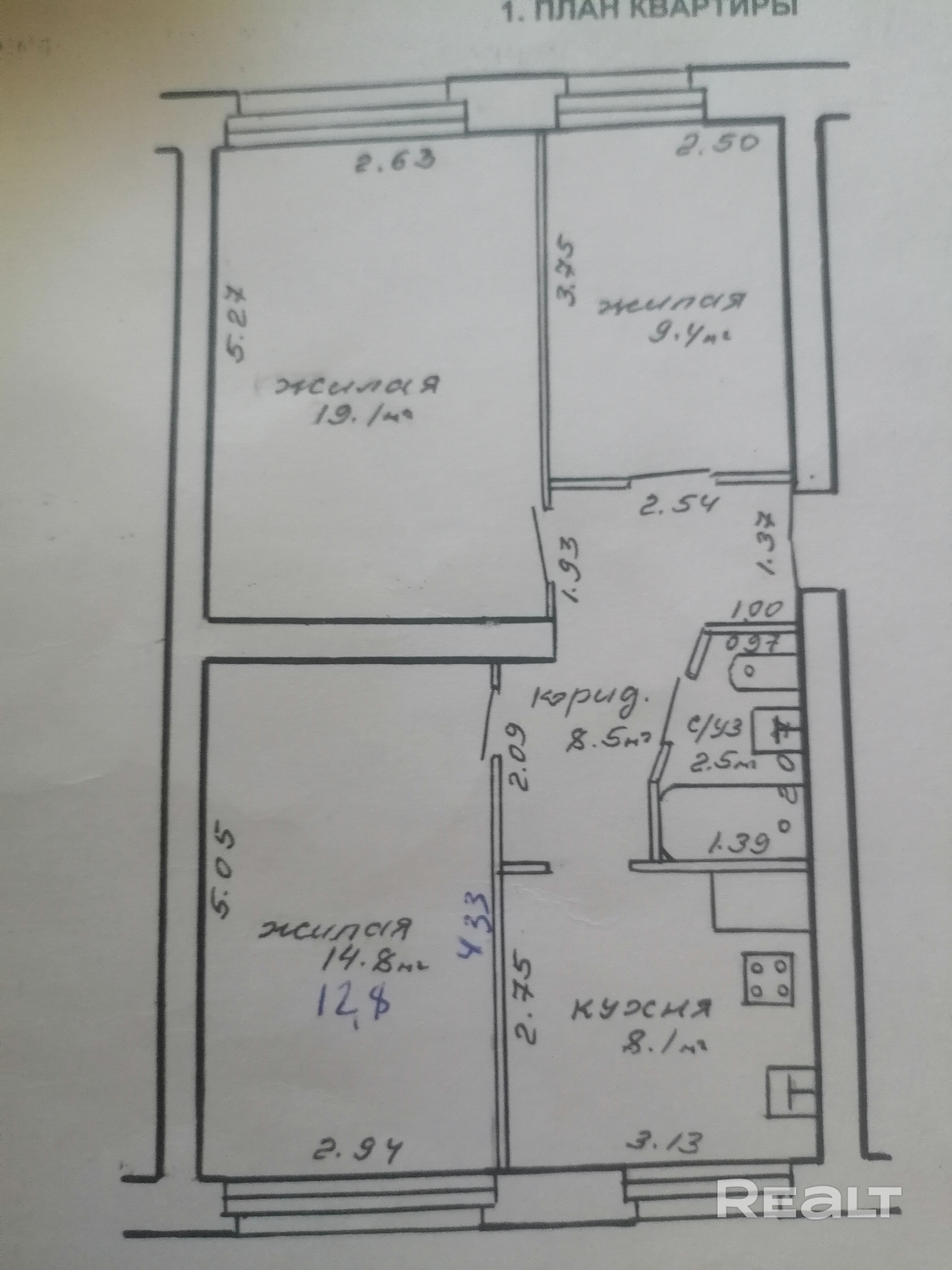 Купить 3-комнатную квартиру, аг. Лапичи, ул. Армейская, 2 (Осиповичский р-н, Могилевская область)