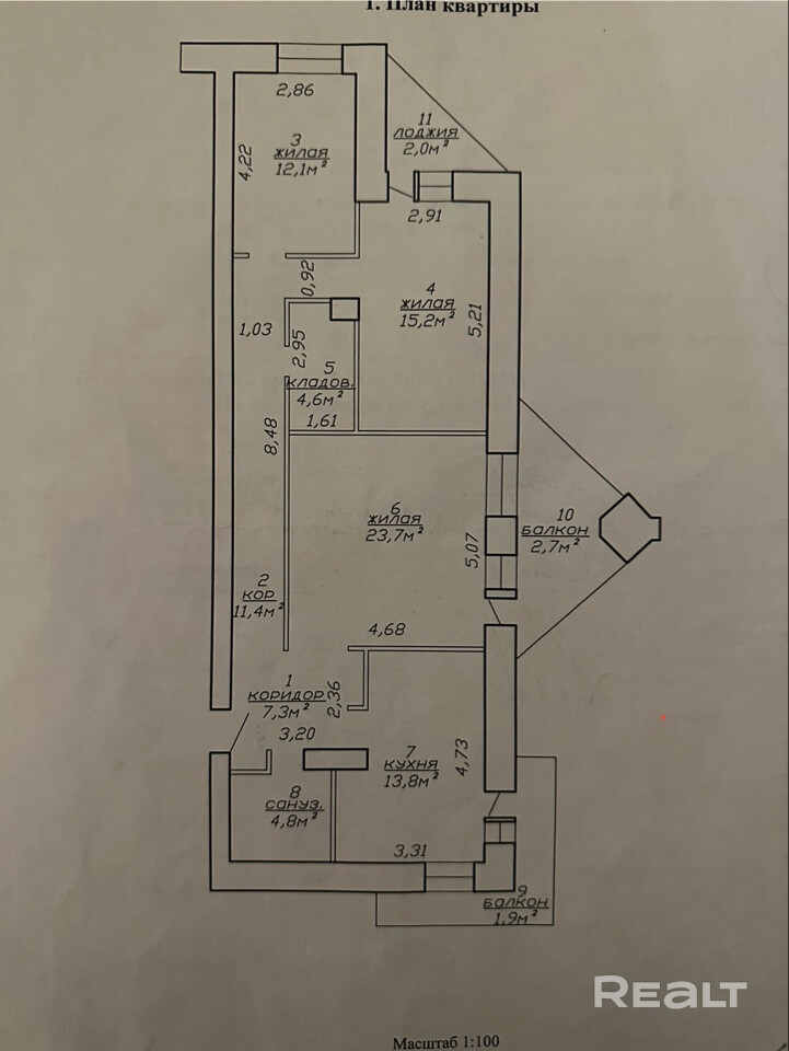 3х комн квартира в кирпичном доме 99,5 кв м
