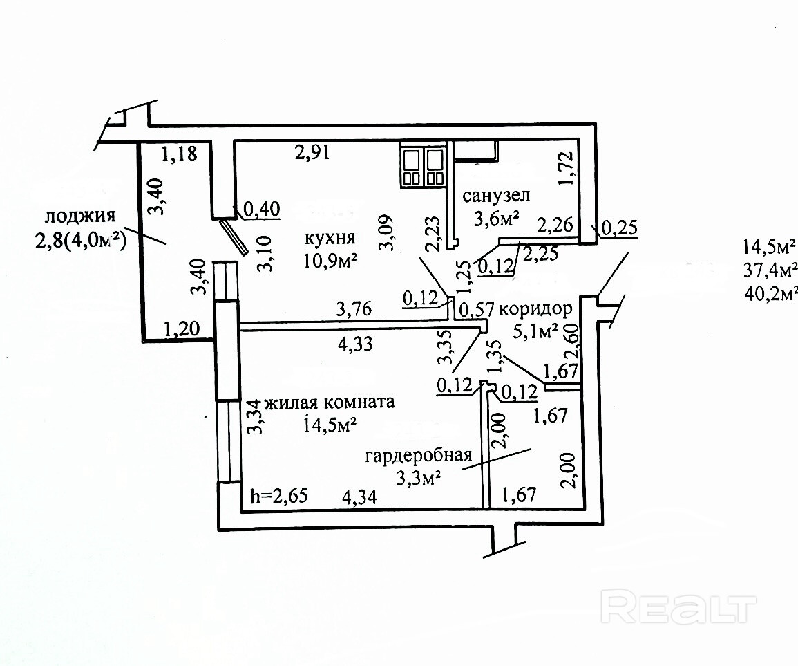 Площадь квартиры: 37,4 м2, кухня: 10,9 м2 — просторной площади для комфортной готовки и уютных семейных завтраков.