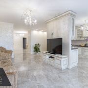 - В квартире выполнен ремонт с использованием импортных качественных материалов. Полностью выравнивалась стяжка пола, а также выравнивались все стены и полотки. Полностью менялась электрика на Медную, отдельно стоят автоматы на каждую линию отдельно. Вся сантехника немецкая.