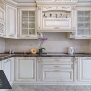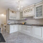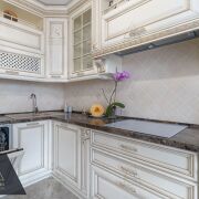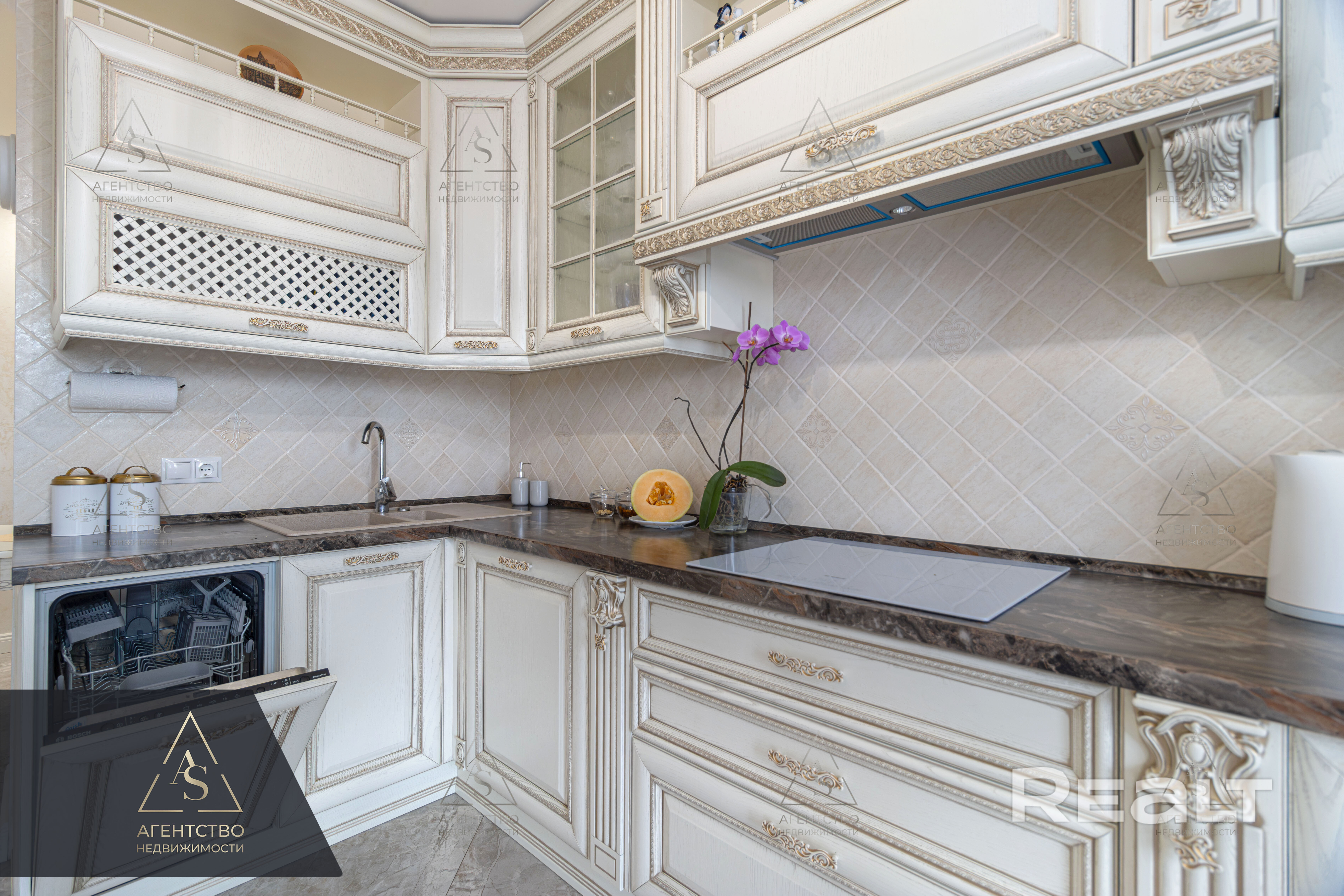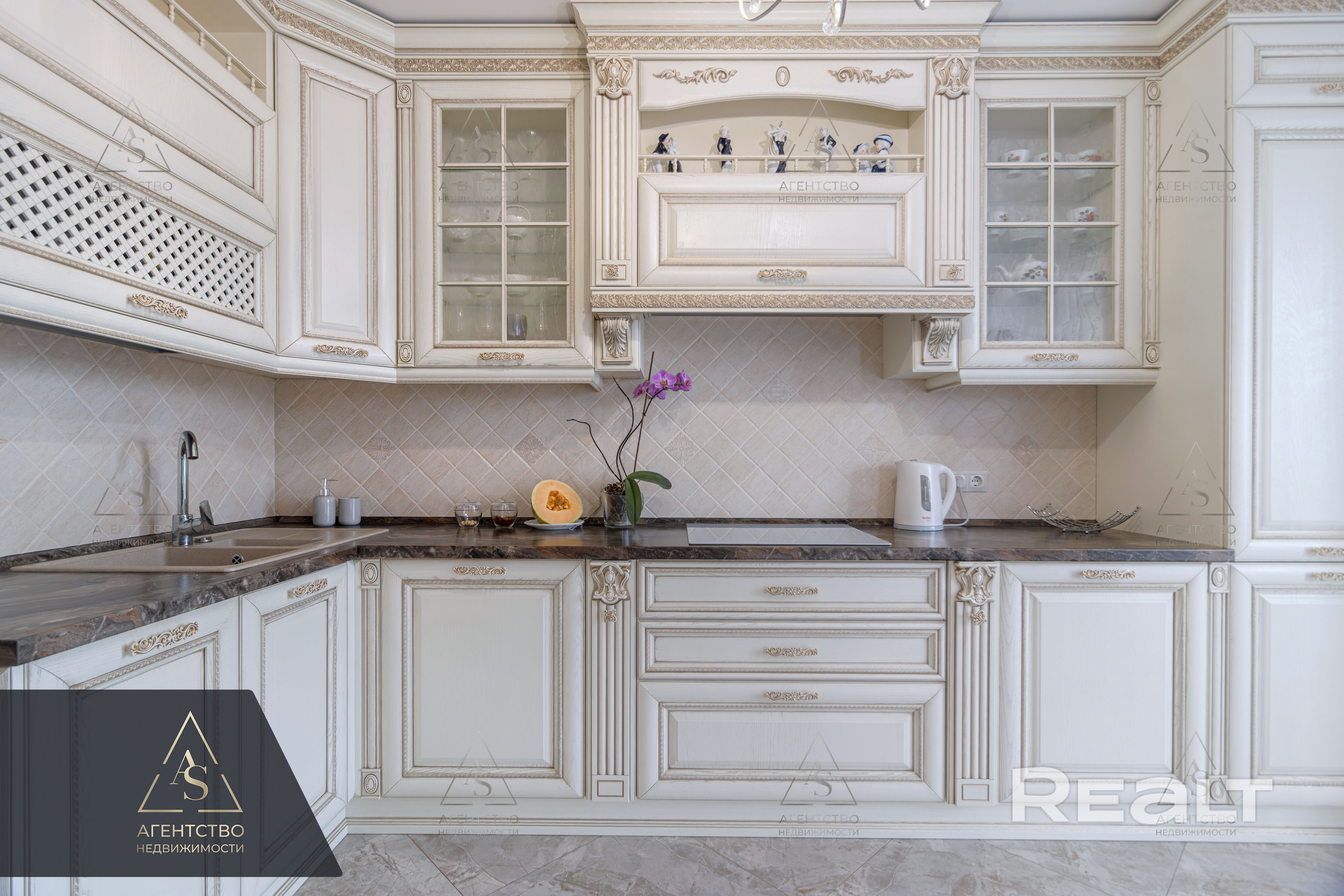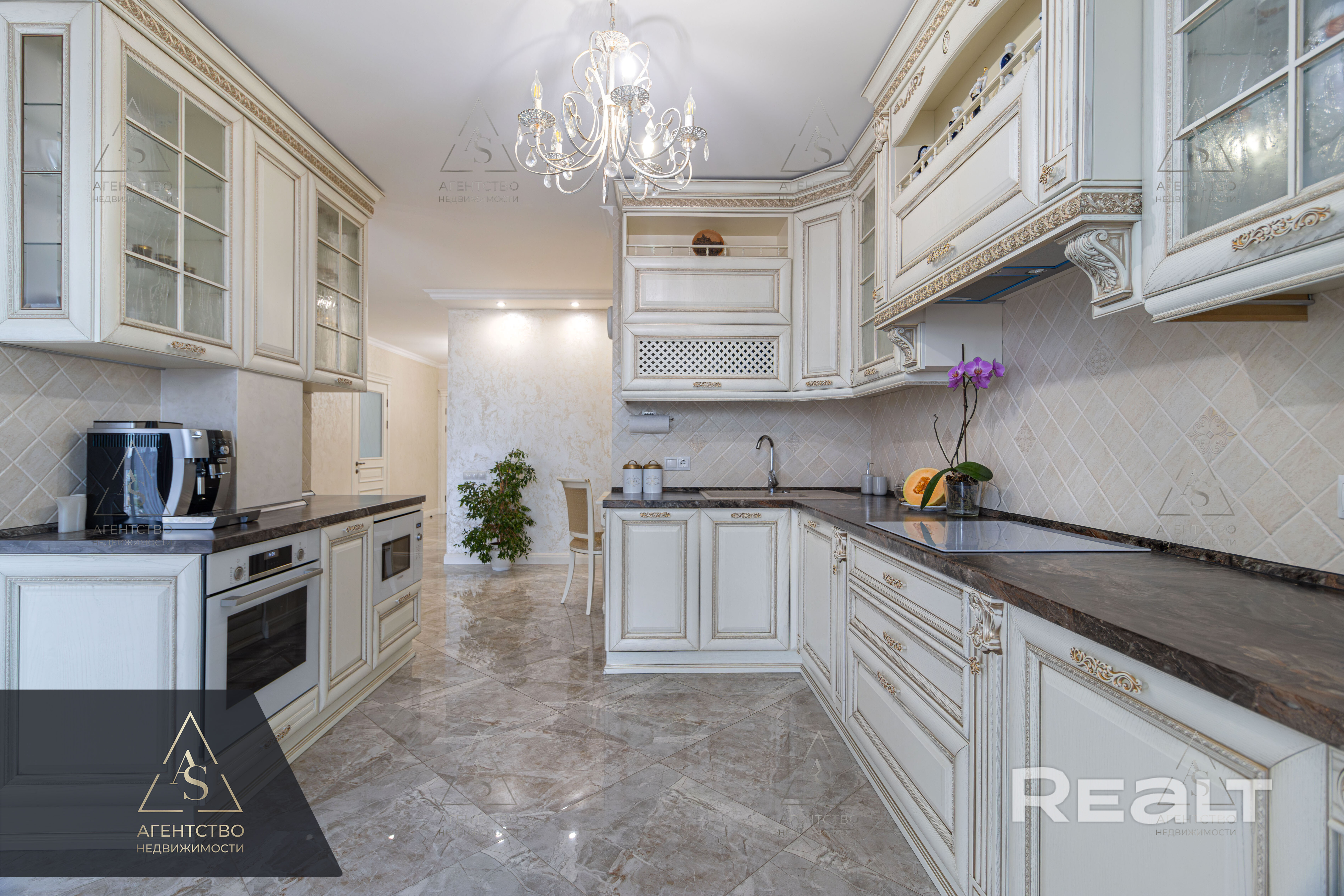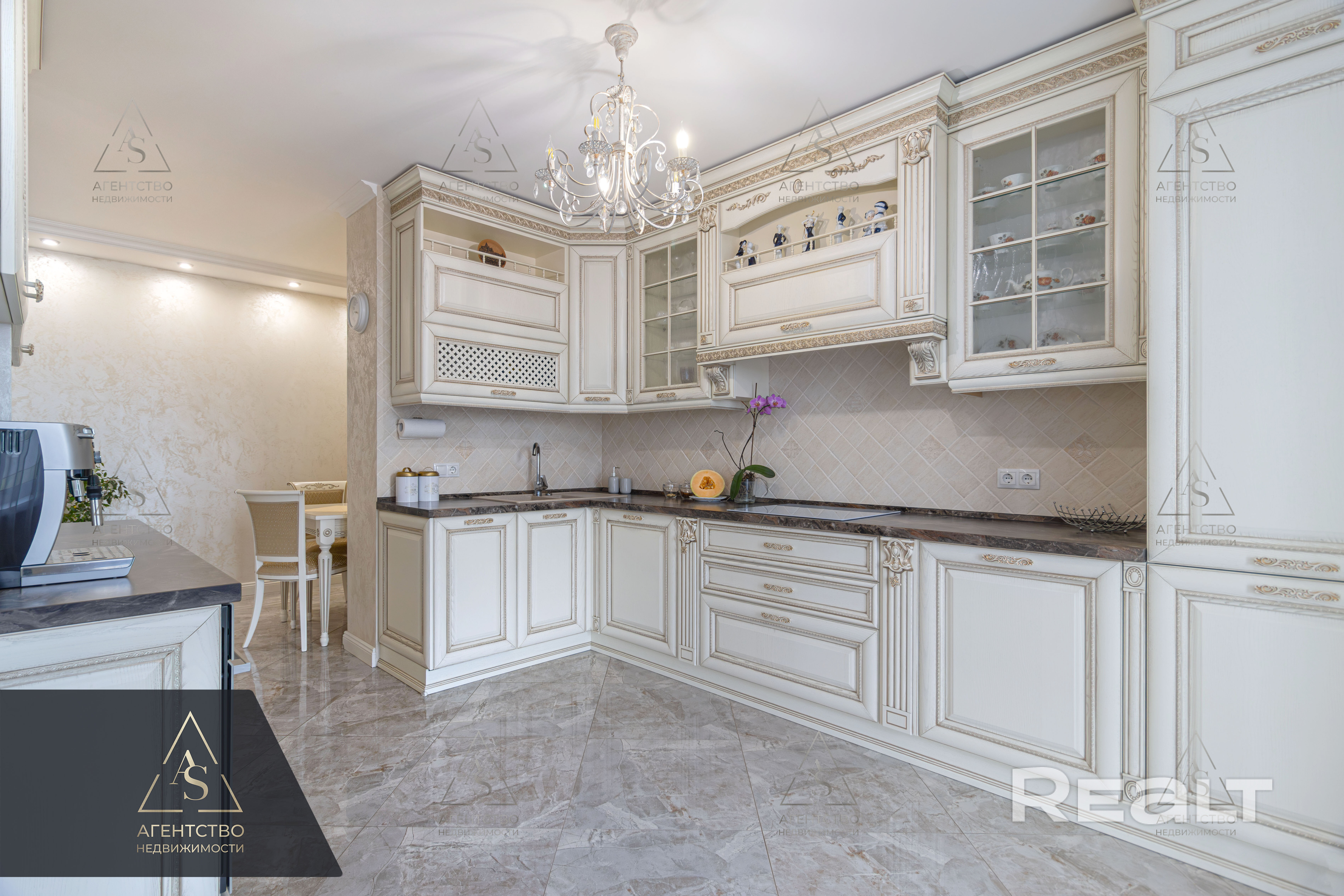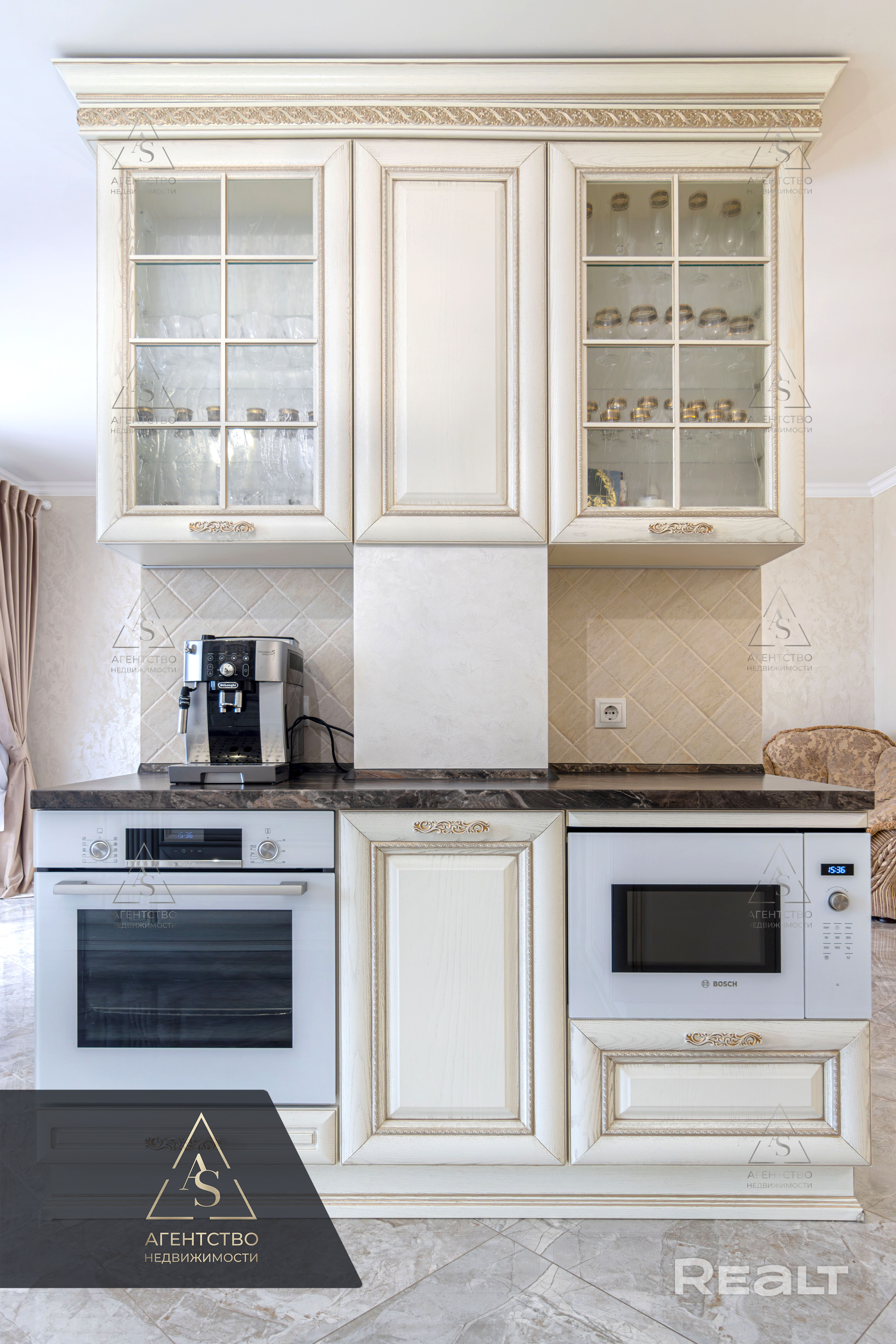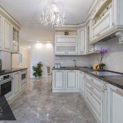 - Вся кухня Итальянского производства сделанная из массива Ясеня со всей встроенной техникой Bosch: (посудомоечная машина 45, индукционная варочная панель, духовой шкаф, вытяжка, встроенный холодильник, а также встроенная микроволновая печь). Вся кухня с доводчиками Blum.
