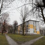 Окна не выходят во двор, открывается вид на зеленую, спокойную зону.