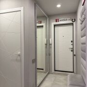 В коридоре — качественная входная группа и вместительный встроенный шкаф.