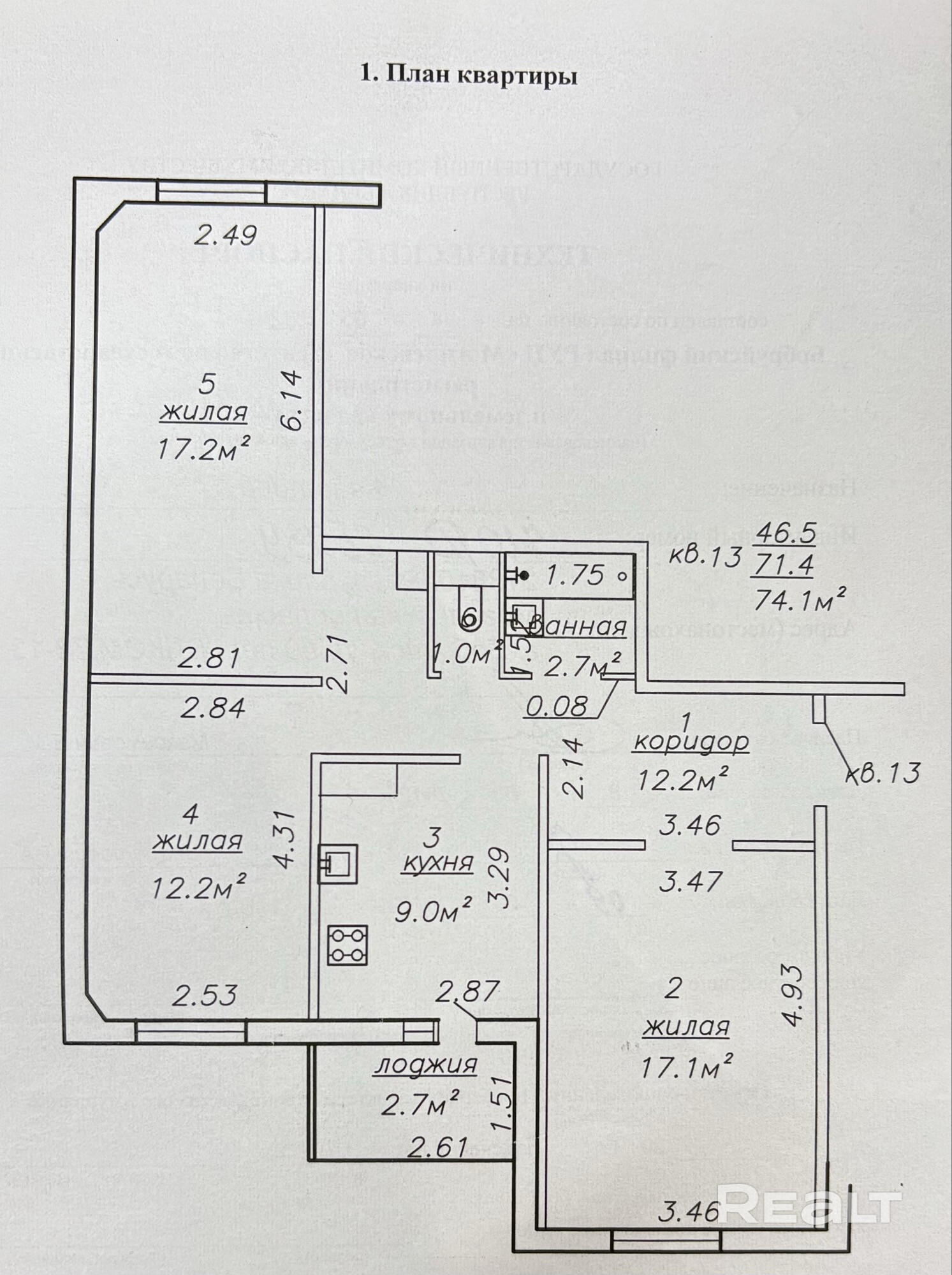 Купить 3-комнатную квартиру, г. Бобруйск, ул. 50 лет ВЛКСМ, 73