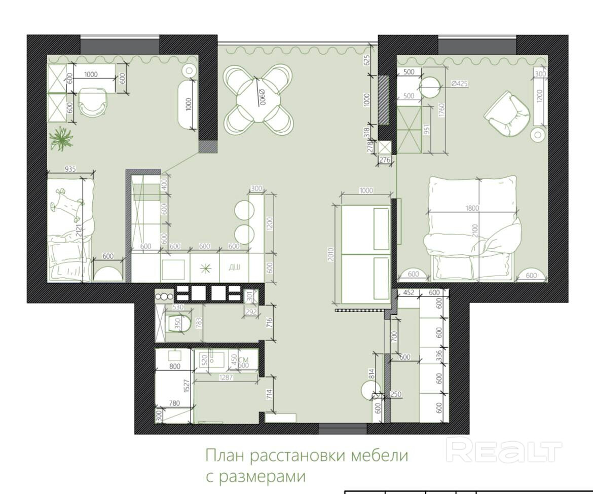 + бонусом - план дизайнерской планировки и интерьерного решения