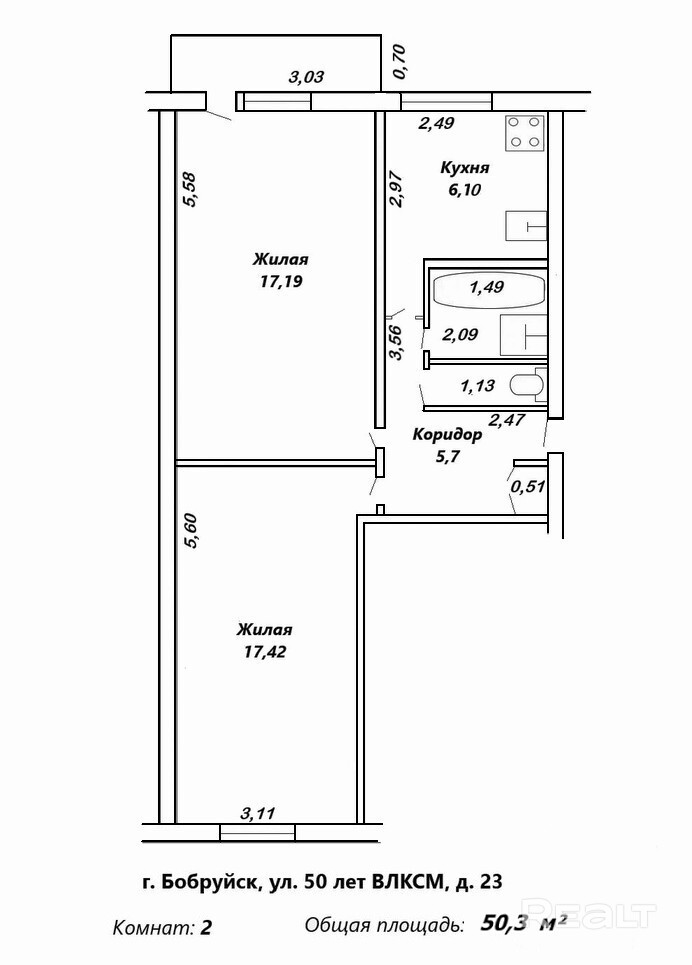 Купить 2-комнатную квартиру, г. Бобруйск, ул. 50 лет ВЛКСМ, 23