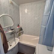 Стены выровнены и загрунтованы. По всей квартире ламинат, пол не скрипит. Потолки натяжные. Двери все новые, ванная новая (акрил). Установлены счетчики на воду и на газ. Вентиляция домовая функционирует. Квартира теплая, дом весь утеплен. Тамбур на 2 квартиры с ремонтом, что очень удобно. Соседи спокойные, дом тихий. Мебель можем оставить, по вашему желанию.