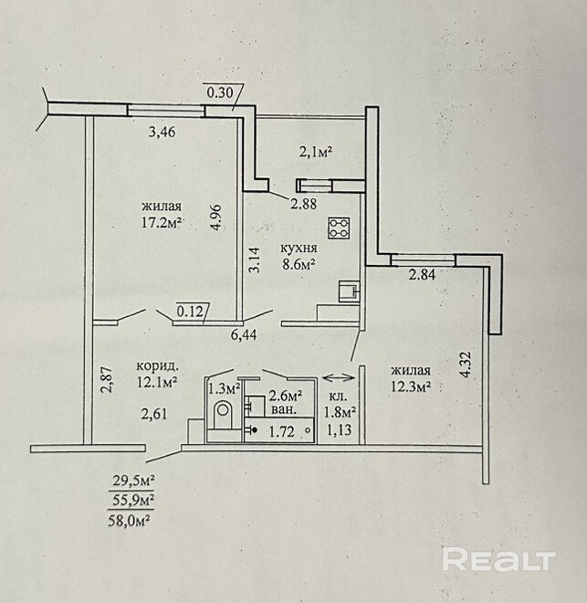 55.9 м²