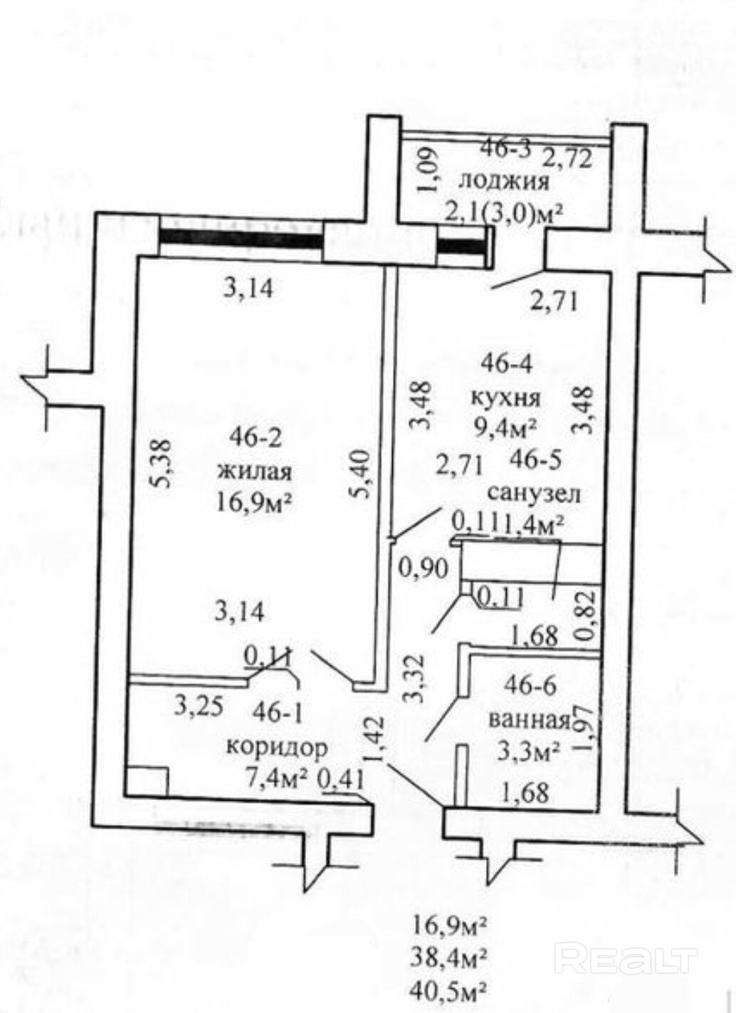 38.4 м²