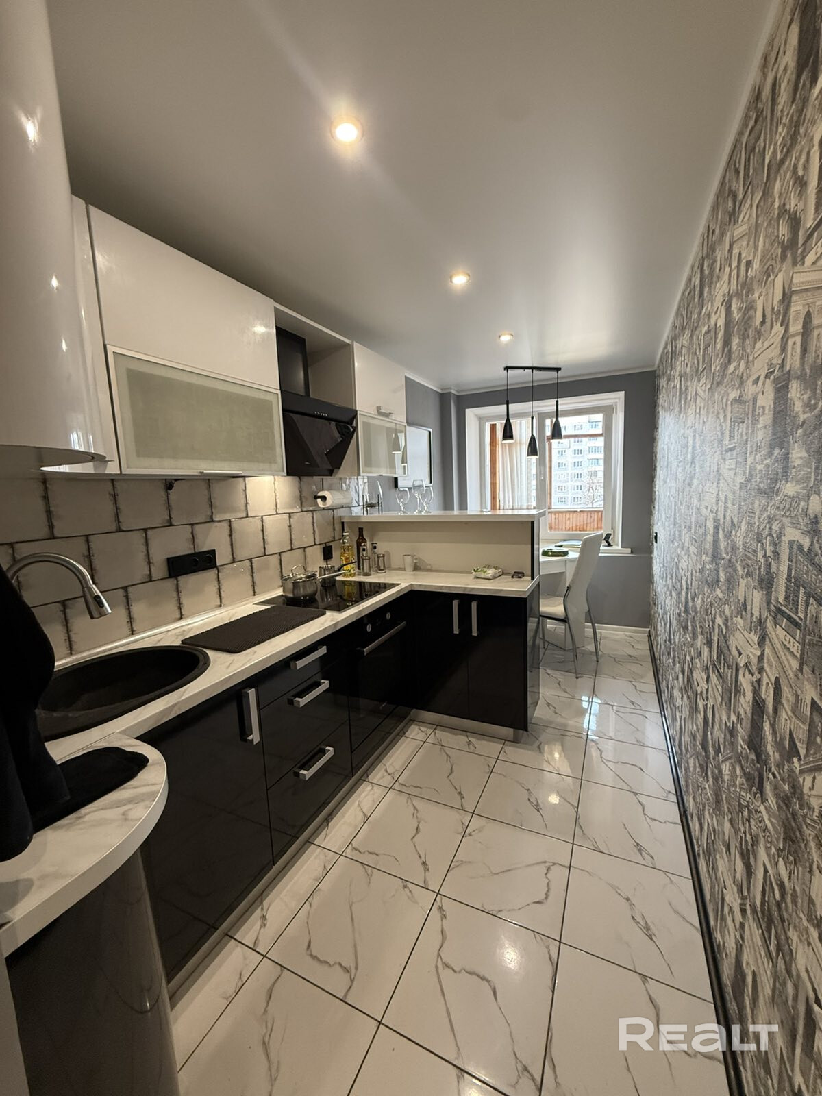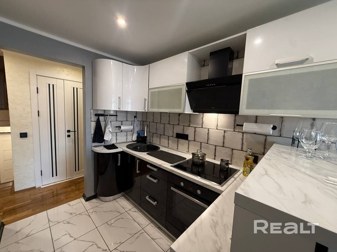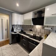 - В квартире сделан современный ремонт с использованием качественных материалов, на объекте остается встроенная кухня и мебель.