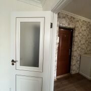 Вишенка на торте: необыкновенной красоты межкомнатные двери (массива берёзы) с врезными стеклами.
