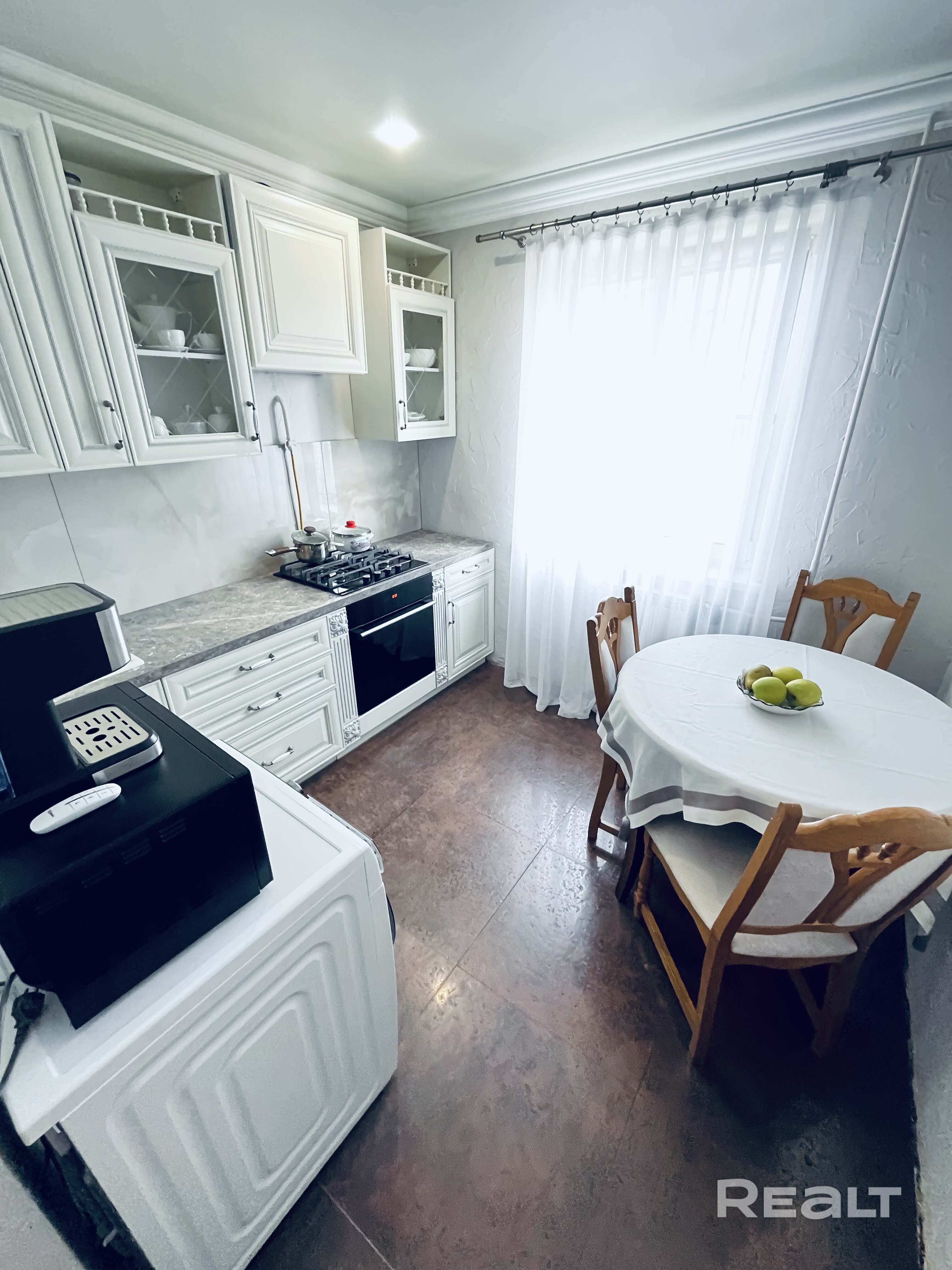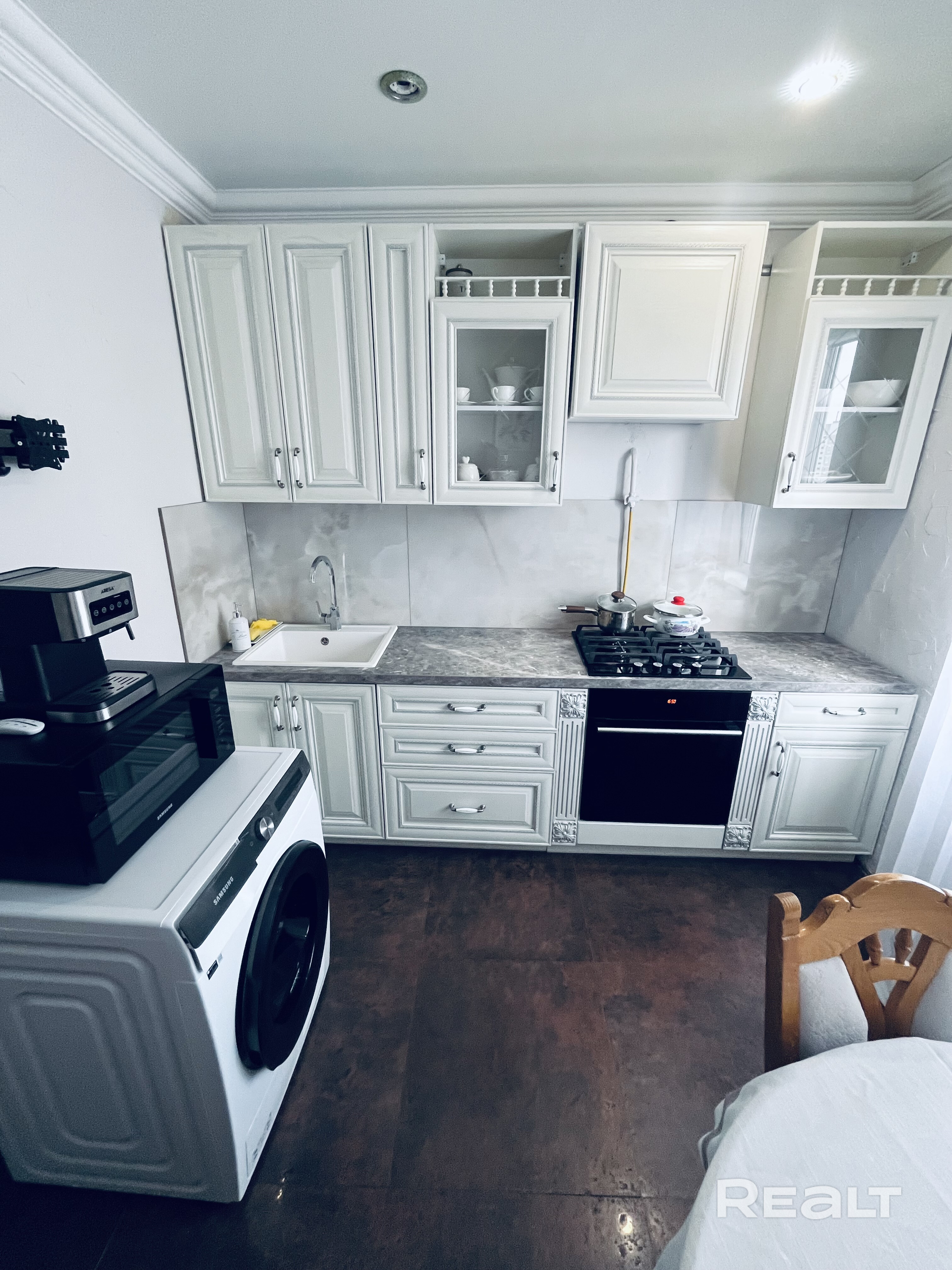 Самый главный и самый привлекательный бонус для нашего покупателя - красивая современная и качественная мебель ''Пинскдрев'', все позиции из одной коллекции, очень дорогостоящий кухонный гарнитур (массив дуба) с вензелями, два выставочных дивана (натуральная итальянская кожа), варочная поверхность, духовой шкаф '' Samsung'', текстиль и все другие предметы интерьера остаются новому владельцу (заберем только личные вещи и несколько дорогих сердцу вещей). Остальная техника по договоренности.